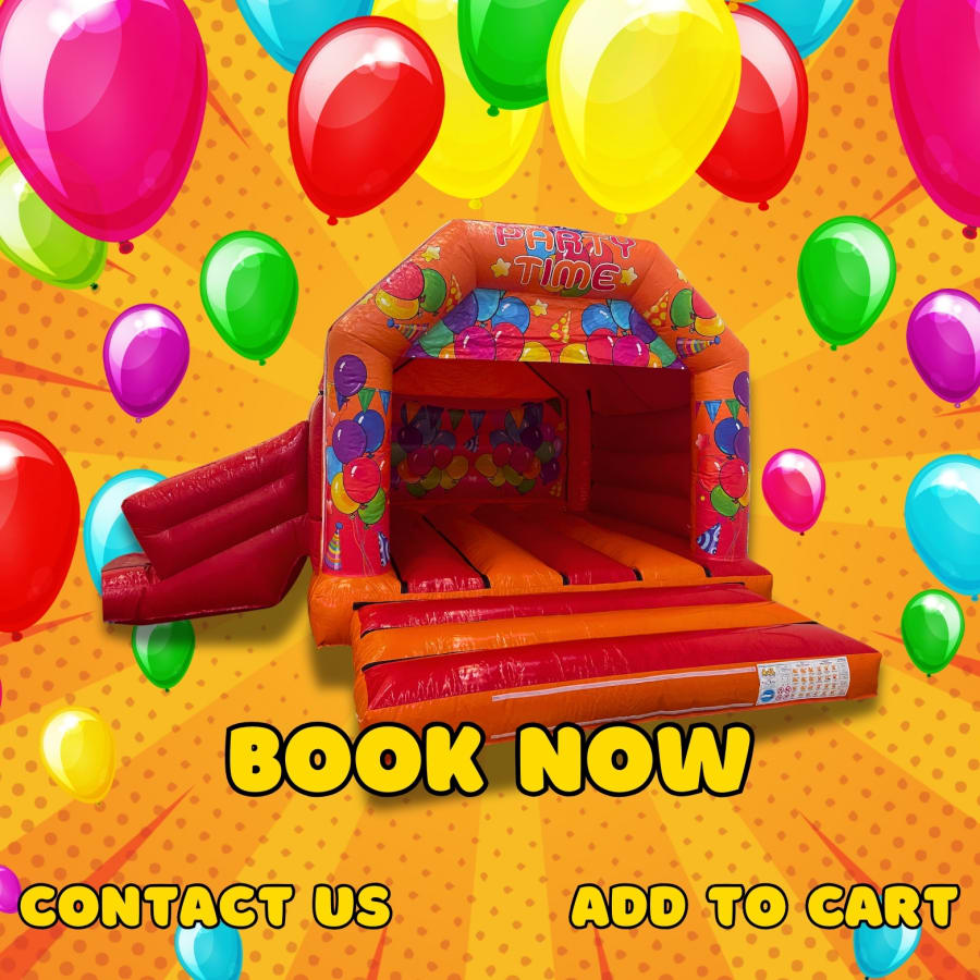 Party Time bouncy castle with slide, inflatable bounce house with slide, party inflatables, kids' party entertainment, bounce house rental, fun slide inflatable, party time inflatable, birthday party rentals, outdoor event entertainment, inflatable slide rental, bounce house with slide, colorful bouncy castle, party-themed inflatable, event planning, kids' slide inflatable, party games, inflatable playground, large bounce house with slide, event entertainment for kids, inflatable water slide, festive party entertainment, family-friendly bounce house, slide and bounce house rental, birthday party fun, inflatable slide for hire, kids' celebration rentals