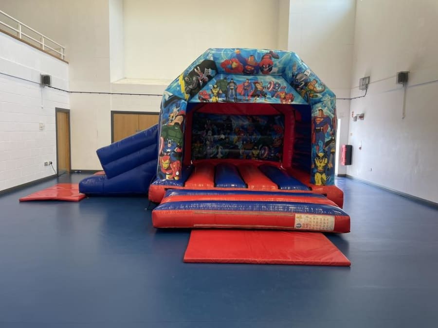 Superhero Bouncy Castle with Slide Hire Antrim