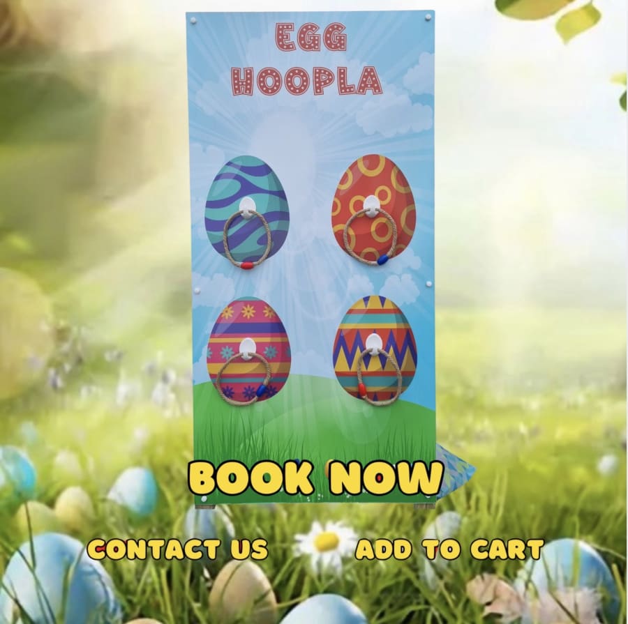Easter game hire Easter Game- Egg Hoopla in Antrim, Ballymena, Northern Ireland is the perfect addition to your Easter event. Fast to set up. Simple to play. Great for kids and grown-ups. This colourful hoopla board brings classic fairground excitement to community events, school fêtes, family parties, and church gatherings. 🥳